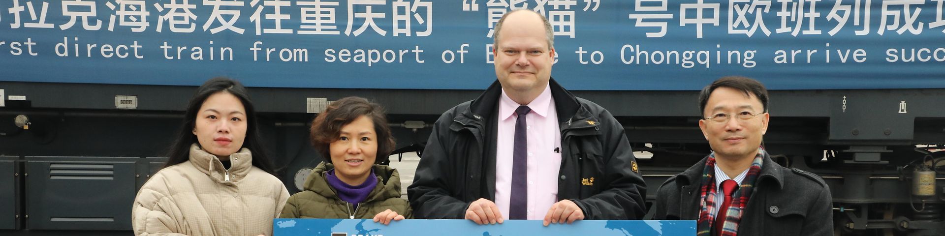 Together with our partners DB Cargo and DB Cargo Logistics, DB Cargo Eurasia launched the first direct train carrying pulp from the seaport of Brake to Chongqing in China. It covered more than 10,000 km, 8 time zones and 4 climate zones in just 16 days. On 28.12.2020, the arrival of the 1st Panda train was celebrated at a ceremony on site at the terminal.